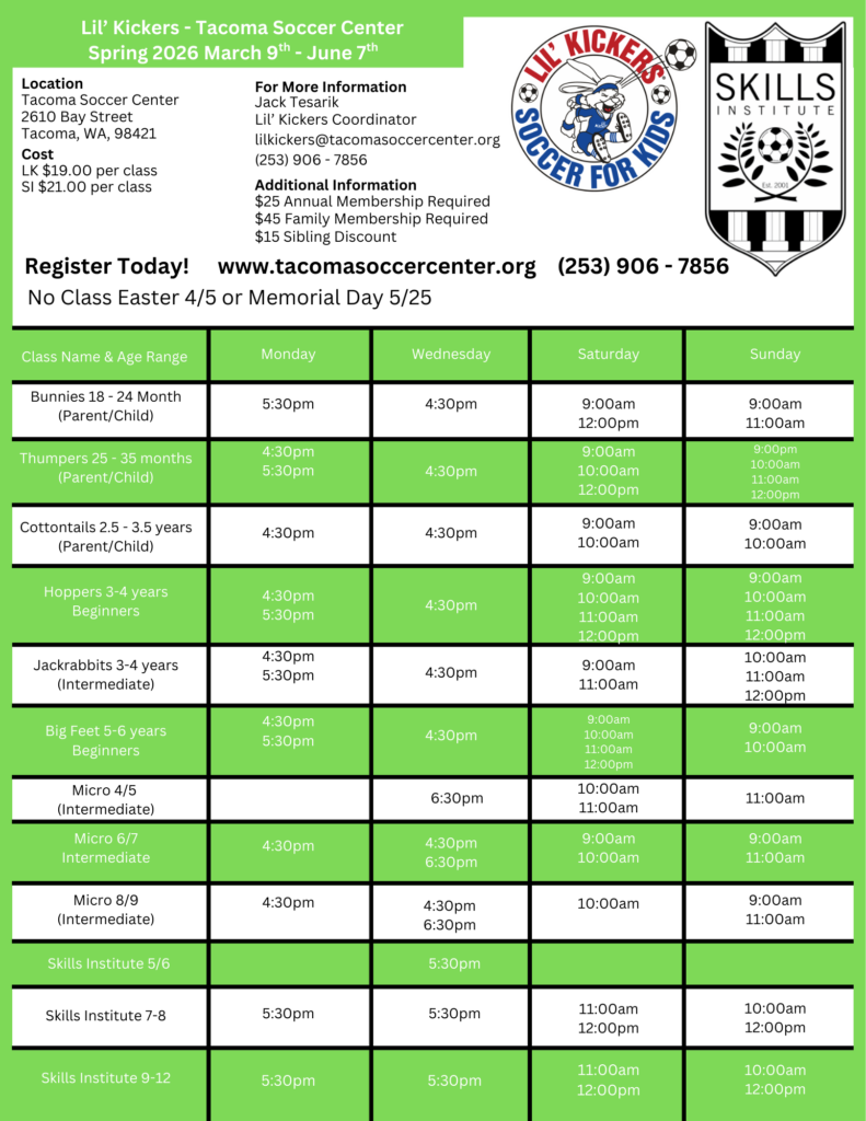Register now for our Spring 2026 Lil’ Kickers & Skills Institute classes!