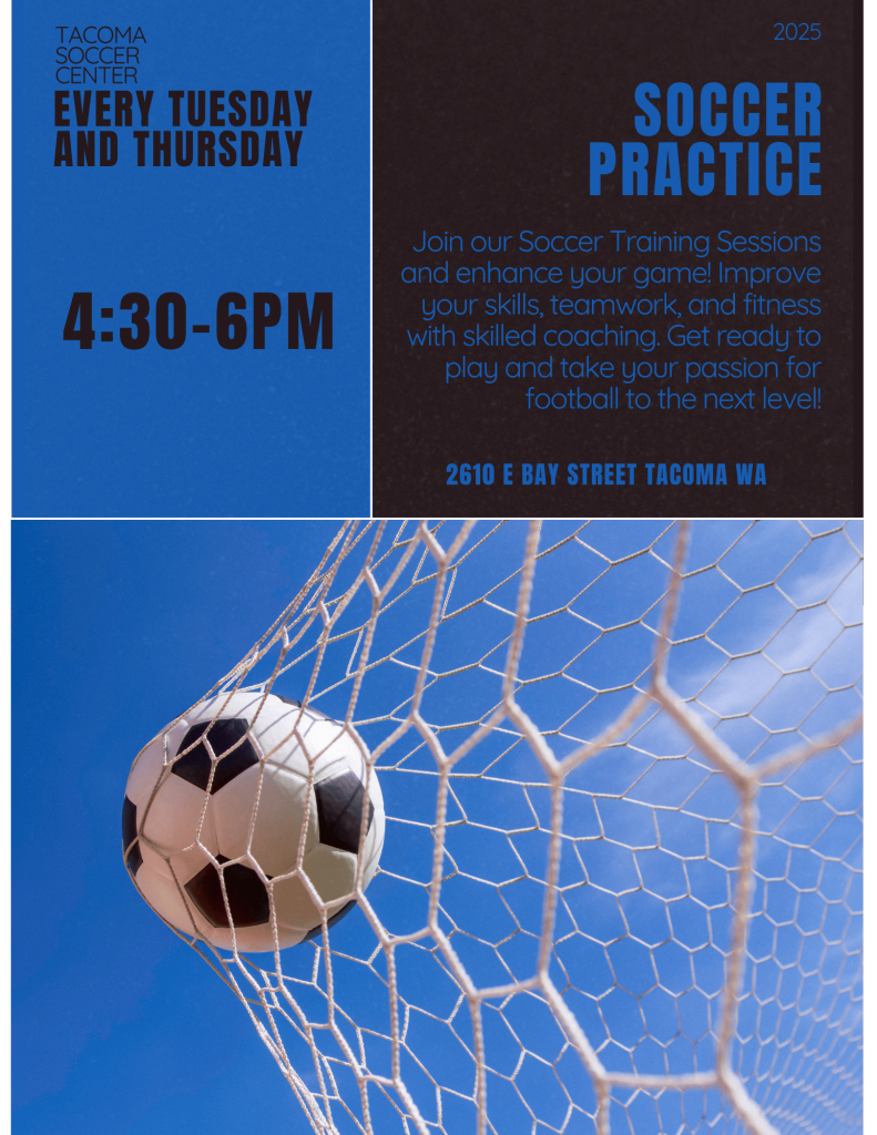 Join us for a series of indoor soccer practices at the Tacoma Soccer Center starting November 6th – December 18th π This is a fantastic opportunity for players to come indoors and practice with some of the skilled staff members at the Tacoma Soccer Center. π